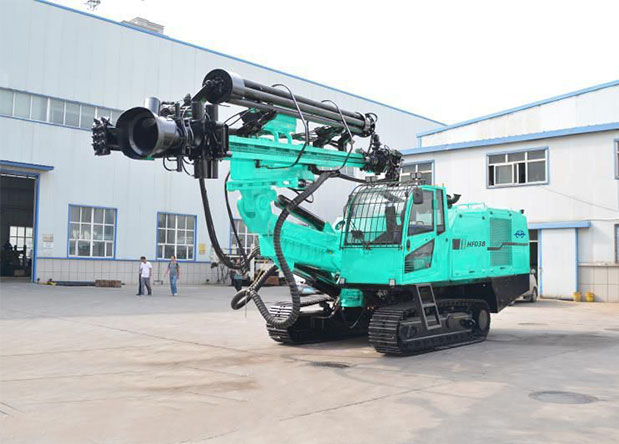 HF038一體式全液壓潛孔鉆機是一款可以為您帶來更高自動化、更高鉆進效率的產(chǎn)品,運行可靠,操作簡單。標(biāo)配有滿足FOPS要求的駕駛室和自動換桿系統(tǒng),加寬重型行走機構(gòu),在滿足快速移動的同時兼顧更好的安全性,液壓除塵系統(tǒng)可滿足礦山的環(huán)保要求,是現(xiàn)代綠色礦山開采的可靠解決方案。